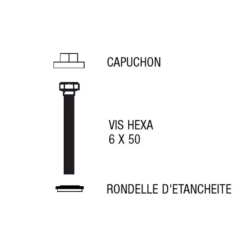 Le kit se compose d’une vis M6 50 mm, d’un capuchon et d’une rondelle d’étanchéité.