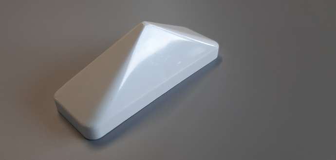 Fabriqué en PVC de qualité de 1 mm, ce chapeau présente une finition blanche et lisse, qui s’intègre parfaitement à un ensemble composé de lisses et profilés PVC de même teinte. Sa forme pyramidale lui confère non seulement un aspect décoratif mais aussi un rôle fonctionnel : en évacuant mieux l’eau de pluie et en empêchant l’accumulation de saletés, il contribue à prolonger la durée de vie de la lisse qu’il recouvre.
