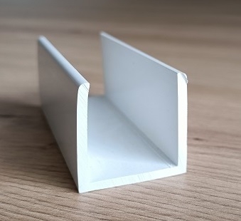 Profilé en U PVC blanc lisse 26 mm vendu au mètre, idéal pour bordures de panneaux.