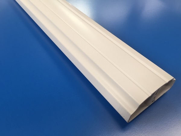 Lisse moulurée de clôture PVC blanc 9016, largeur 60 mm, épaisseur 26 mm, vendue au mètre linéaire.