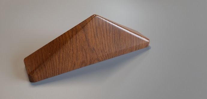 Chapeau pointu PVC chêne doré pour lisse de clôture de 130 x 26 mm. Vendu à l’unité.