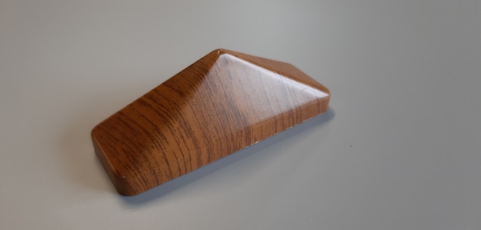 Fabriqué en PVC de qualité de 1 mm, ce chapeau présente une finition marron avec plaxage chêne doré et lisse, qui s’intègre parfaitement à un ensemble composé de lisses et profilés PVC de même teinte. Sa forme pyramidale lui confère non seulement un aspect décoratif mais aussi un rôle fonctionnel : en évacuant mieux l’eau de pluie et en empêchant l’accumulation de saletés, il contribue à prolonger la durée de vie de la lisse qu’il recouvre.